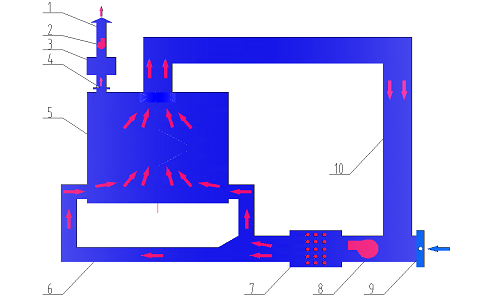 變壓器散熱片懸掛鏈?zhǔn)絿娖嵘a(chǎn)線烘干室:烘干采用熱風(fēng)循環(huán)電加熱的方式進(jìn)行。通過循環(huán)風(fēng)機(jī)及管道,加熱后的空氣進(jìn)入烘干室內(nèi)與工件進(jìn)行熱交換,實現(xiàn)對工件的升溫加熱,換熱后的空氣由回風(fēng)管收集,與補(bǔ)充的新鮮空氣一起返回到加熱室,形成內(nèi)循環(huán)