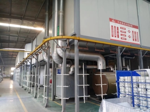 靜電粉體涂裝生產(chǎn)線工藝流程(一) 上件 → 熱水洗 →預(yù)脫脂(60℃) →主脫脂(60℃) →水洗(1) →水洗(2) →酸洗 →水洗(3) →水洗(4) →表調(diào) →磷化(40--45℃,鋁材使用鉻化工藝)→水洗(5) →水洗(6) →純水洗(1) →脫水烘干(120℃) →靜電噴粉系統(tǒng)(含噴粉房、自動噴涂升降往復(fù)機、靜電發(fā)生器、靜電噴槍、粉桶、小旋風(fēng)粉末回收裝置) →烘干固化(160℃-420℃) →冷卻 →下件