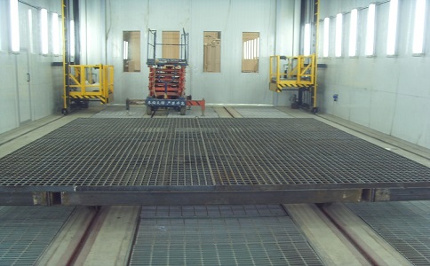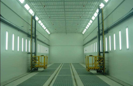 ? 以氣流方向劃分為三類。 大件線噴漆室 橫流式噴漆房: 氣流從房的一端流向另一端。此種機(jī)型成本低,易安裝。缺點(diǎn)是霧狀物沿著車身側(cè)面移動(dòng),且霧氣不能從操作者的面部周圍除去,工作環(huán)境不盡人意。