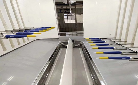 粉末涂裝線是一種含有100%固體成份,以粉末形態(tài)進(jìn)行涂裝的涂料,(有人叫噴塑)它與一般溶劑型和水性涂料的不同在于,它不使用溶劑或水做分散介質(zhì)。