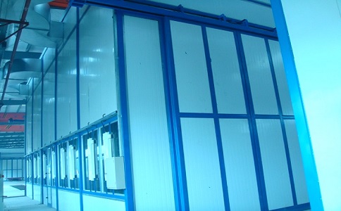 水漩噴漆室送風系統(tǒng)送風系統(tǒng)主要由送風機、風機座、支架和風管等部分組成。噴漆室采用上送下吸的氣流組織方式,送風裝置采用分組送風的方式,由新風段、初效段、加熱段、風機段等組成,設備運行平穩(wěn)、可靠。新風段從廠房側面吸進新風,送風均勻,工件兩側工作區(qū)域內層流風速最大誤差在±0.1m/s以內。