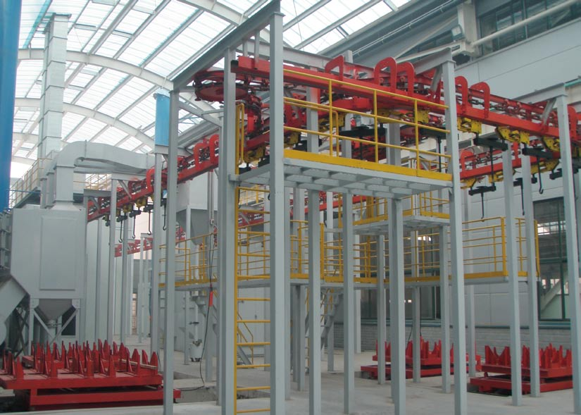 ?一般情況下,涂裝生產(chǎn)線由上線段、前處理工作段、屏蔽段、噴涂室、流平段、烘道、工件傳輸系統(tǒng)、送排風(fēng)系統(tǒng)、廢氣凈化系統(tǒng)、安全滅火系統(tǒng)和計(jì)算機(jī)控制系統(tǒng)、下線段等部分組成。