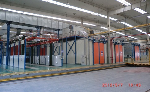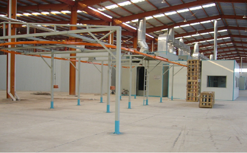 噴粉 涂裝生產(chǎn)線 粉末涂料通過靜電粉末噴涂設(shè)備噴涂在工件表面,在靜電作用下,粉末均勻吸附在工件表面,形成粉末涂料;粉末涂料經(jīng)高溫烘烤、整平、固化后成為不同效果的最終涂料。噴涂效果在機械強度、附著力、耐腐蝕性、耐老化性等方面優(yōu)于噴涂工藝。