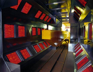 固化時間短:不到兩分鐘就可以把涂料升溫到200度,一般涂料只需要8-10分鐘左右就可以固化,所以固化爐占地面積只需要原來的1/2到1/3。