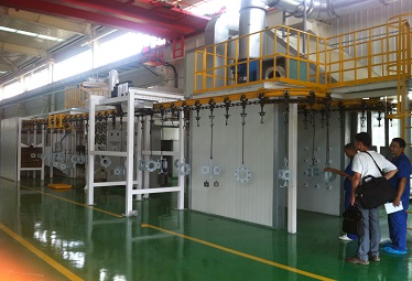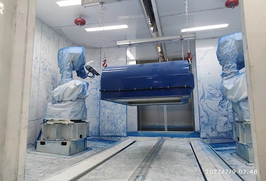 | 靜電噴粉房室體兩側(cè)設(shè)置人工補(bǔ)噴工位,工位大小及位置設(shè)置合理,根據(jù)機(jī)器人仿真噴涂軌跡,保證機(jī)器人噴涂不到的位置人工噴涂均能覆蓋,設(shè)計(jì)時(shí)要充分考慮鏈條速度與人工補(bǔ)噴速度的合理性,保證該工位設(shè)計(jì)滿足線體速度需求。同時(shí)該工位高度設(shè)置要合理,要覆蓋所有工件的人工補(bǔ)噴,并便于人工操作。 |