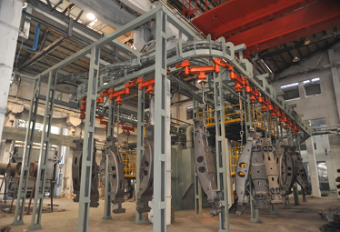 懸鏈通過式拋丸機(jī)按工件輸送方式可分為連續(xù)式、步進(jìn)式、積放式,主要適用于大批量的結(jié)構(gòu)、鑄造、鍛造、鋁合金等工件的表面清理強(qiáng)化,去除銹、氧化皮、粘沙、污物等。該設(shè)備可實(shí)現(xiàn)定點(diǎn)裝卸、定點(diǎn)拋射工序,單點(diǎn)吊重范圍廣:50~2000kg,線速為0.5-3m/min,可變頻調(diào)速