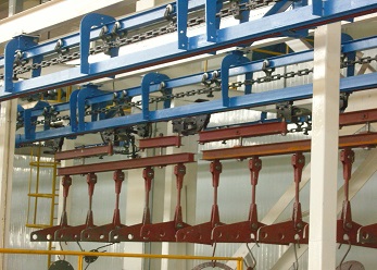電泳涂裝線前處理大多采用浸漬式與噴射式處理方式(也可采用噴射與浸漬結(jié)合方式),其主要目的是通過化學(xué)液體(硫酸、硝酸)以浸泡或噴射的方式,與工件表面的氧化物、油脂等產(chǎn)生化學(xué)反映來達(dá)到除油、脫脂、除銹、水洗、純水洗的目的。電泳采用陰極電泳或陽極電泳,陰極電泳與陽極電泳比較,陰極電泳在技術(shù)上更成熟,其泳后漆膜附著力及防腐蝕力比陽極電泳更強(qiáng)。泳后裝飾涂料可采用噴朔或裝飾性油漆。輸送系統(tǒng)前處理一般采用自行葫蘆或積放式輸送設(shè)備,前處理后轉(zhuǎn)線一般采用地鏈滑撬、懸掛輸送鏈、總行葫蘆等輸送方式。具體需要根據(jù)工件情況決定。其主要決定因素:工件大小、形狀、重量、材質(zhì)等。
