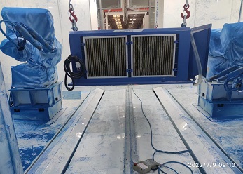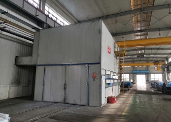 此噴涂線中工件輸送一般采用電動軌道車或天車為輸送方式。該噴涂線主要用于金屬工件、并且材質(zhì)較厚、工件較大的設(shè)備、鋼板,如鑄鍛件、鋼結(jié)構(gòu)件等。1噴1烘一般適合表面要求較低的設(shè)備(一般不建議采用),一般情況下,由于工件較大、重,生產(chǎn)量不高的情況下,噴砂(丸)、除塵都在噴砂房內(nèi)處理。噴底漆、面漆、烘干都在噴烘一體房內(nèi)進(jìn)行。